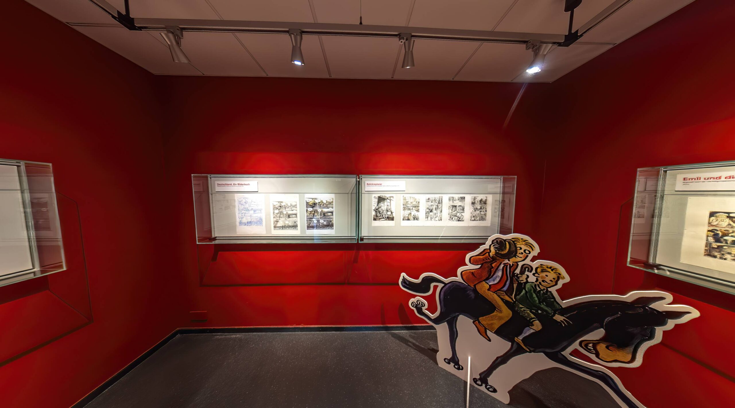Die Ausstellung ist auch für Familien attraktiv, denn Isabel Kreitz adaptierte berühmte Kinderromane wie „Emil und die Detektive“ von Erich Kästner als Bildgeschichten. Überhaupt zieht sich das Motiv der Jugendkultur wie ein roter Faden durch die Arbeiten der Künstlerin.