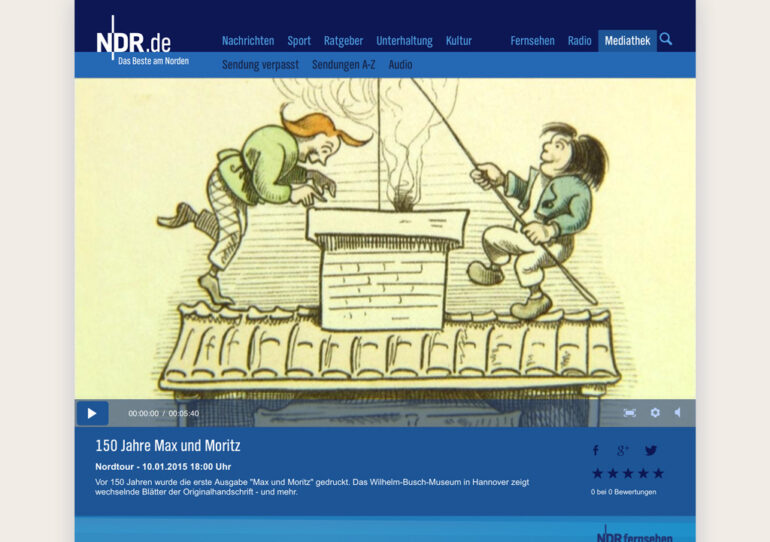 In der Sendung vom 10.1.2015 der Reihe Nordtour des NDR wurde über das Max und Moritz-Jubiläum ausführlich berichtet.