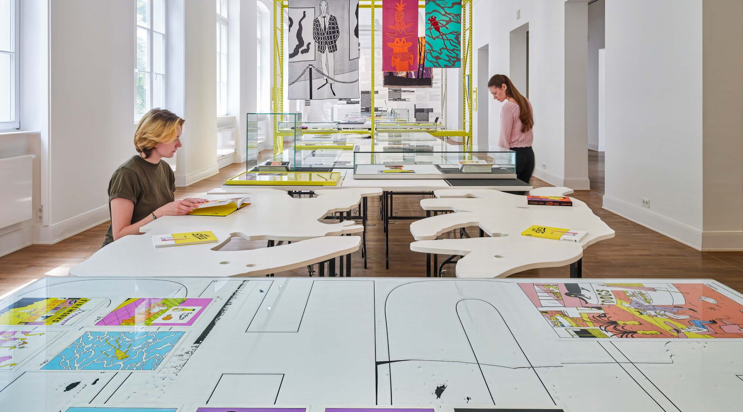Zusätzlich wird die Ausstellung durch interaktive Workshops für Kinder und eine raumgreifende Wandgrafik ergänzt, die Einblicke in Haifischs künstlerische Praxis bietet.