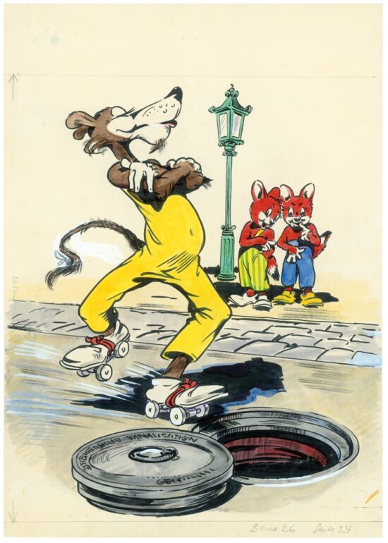 Rolf Kauka (1917–2000) war ein bedeutender deutscher Verleger, Comic-Autor und der Schöpfer der beliebten Comic-Figuren „Fix und Foxi“. Er gilt als Pionier der deutschen Comic-Kultur und wird oft als „deutscher Walt Disney“ bezeichnet. 1953 veröffentlichte er das erste Heft von „Fix und Foxi“, das schnell zur erfolgreichsten Comic-Reihe Deutschlands avancierte. Seine Figuren, darunter Lupo, Pauli und Tom und Klein Biberherz, wurden bei Kindern und Erwachsenen gleichermaßen beliebt. Die „Fix und Foxi“-Hefte erreichten eine beeindruckende Auflage von 780 Millionen Exemplaren, bevor die Serie 1994 eingestellt wurde.