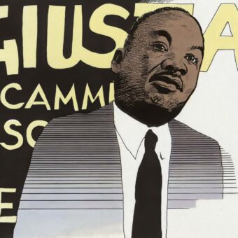 - Martin Luther King Jr. als Comicfigur, gezeichnet von Attilio Micheluzzi, 1983