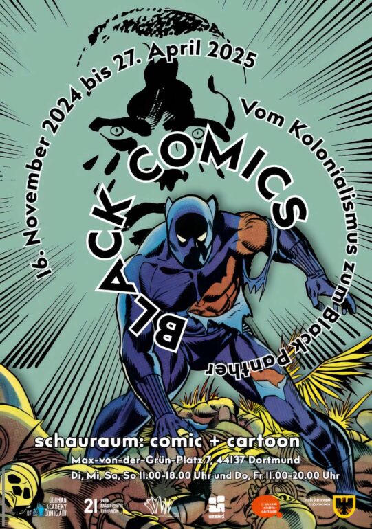 Die Ausstellung „Black Comics – Vom Kolonialismus zum Black Panther“ ist ein echtes Highlight für Comic-Fans, die sich für die spannende und oft überraschende Geschichte schwarzer Figuren und Künstler im Comic interessieren. Sie findet vom 16. November 2024 bis 27. April 2025 im schauraum: comic + cartoon in Dortmund statt und wird von Dr. Alexander Braun, einem zweifachen Eisner-Award-Träger, kuratiert.